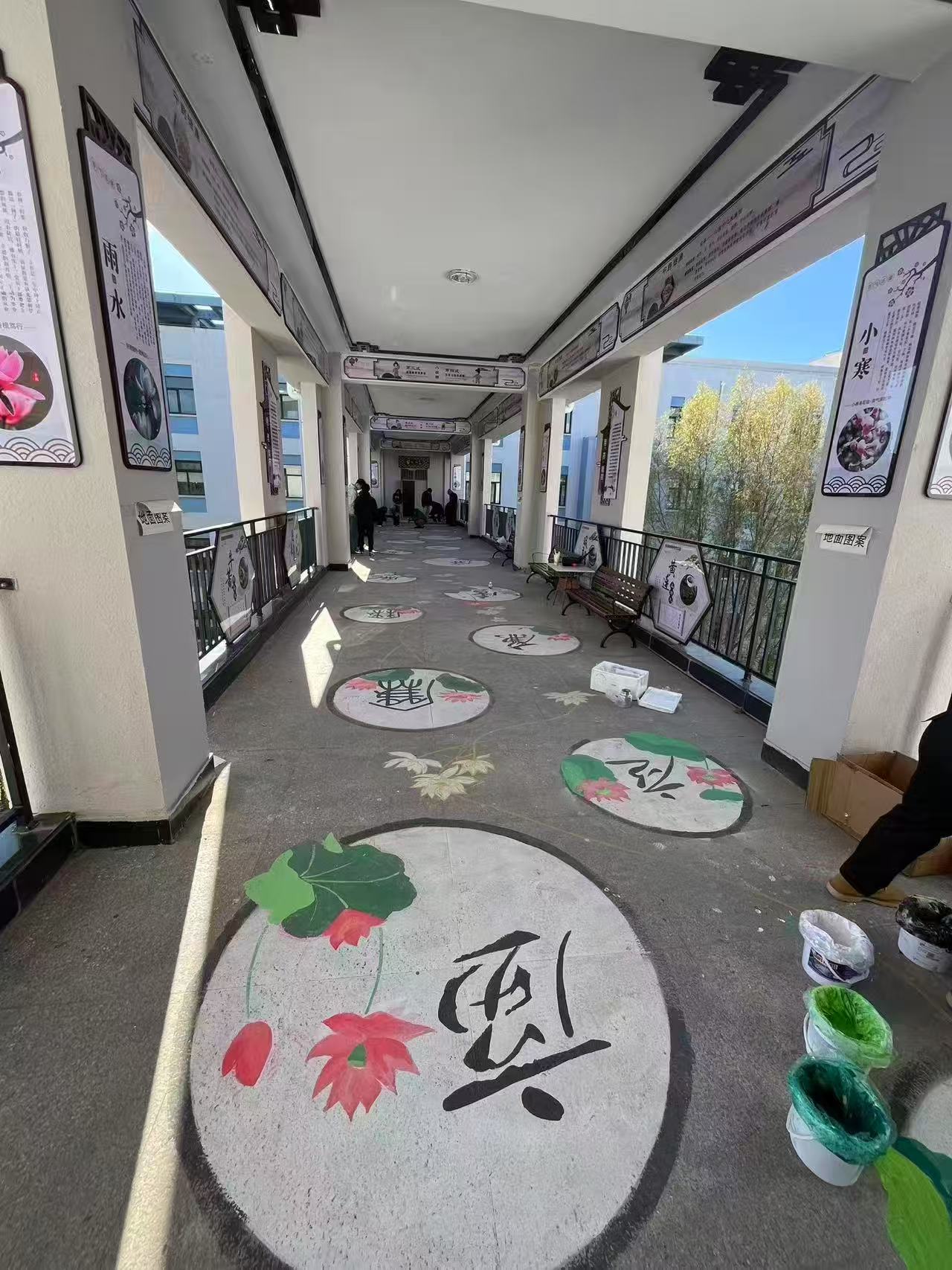 活动自暑假启动,历经“主题构思—初稿设计—多轮打磨—现场绘制”闭环。学院组建专项团队,围绕“廉”的内涵与“荷”的意象,五度优化方案:小到荷花花瓣线条、“廉”字书法字体,大到 300 余平米画面布局、色彩统一,细节处凝聚严谨态度。从盛夏草图到秋日成画,跨季节筹备不仅锤炼艺术专业能力,更让成员体悟“廉洁需笃行”的精神。最终作品将“廉洁”从抽象概念化为具象图景让校园空间成为廉教“活载体”。
