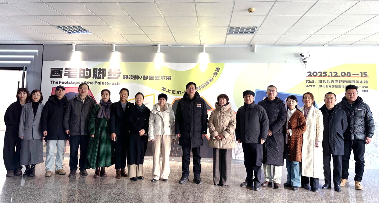 2025年12月8日上午,“画笔的脚步——邢晓静艺术展”开幕式在河北北方学院东校区美术馆隆重举行。学校党委副书记、校长彭学君,副校长刘颖慧出席开幕式,张家口市政协、市作家协会、市美术家协会、市民家文艺家协会、市新闻记者协会、市文艺评论家协会代表及学院师生代表共同出席本次活动。